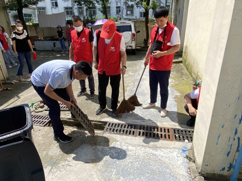 随后,志愿者们走进残疾人手工生产车间,和残障工人一起做手工绢花、加工电子配件,与他们亲切交谈,询问其生活中的困难,并参观了爱心食堂、员工宿舍、康复室和活动室。其间,志愿者们还为工场内员工清扫宿舍、更换床上用品;听说下雨后场内容易积水,他们不畏炎热打开下水管道清理杂物,防止堵塞。